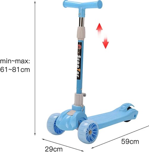 - Podświetlane koła LED: 3 koła tej hulajnogi wykorzystują koła o średnicy 12 cm i szerokości 5 cm, które migoczą i są ciche, aby zmniejszyć hałas toczenia. Jednocześnie kolorowe światła LED migoczą podczas przesuwania, co sprawia, że dzieci są interesujące.