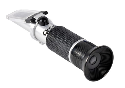 Refraktometr - tester płynu chłodniczego elektrolitu Refraktometr jest urządzeniem pozwalającym określić właściwości fizyczne cieczy za pomocą pomiaru współczynnika załamania światła na granicy ośrodków. Dzięki temu można określić: poziom naładowania akumulatora, temperaturę zamarzania płynów opartych na glikolu propylenowym lub alkoholu etylowym, temperaturę zamarzania płynu do spryskiwaczy. Profesjonalny refraktometr do pomiarów płynów eksploatacyjnych samochodów osobowych, ciężarowych i autobusów. Przeznaczony jest do określania temperatury zamarzania płynu do spryskiwaczy, płynu chłodzącego glikolu propylenowego i glikolu etylowego. Podaje również zakres gęstości elektrolitu. Zestaw zawiera pipetkę do pobierania próbek oraz szmatkę do czyszczenia. Wszystko zapakowane w solidne plastikowe pudełko.
