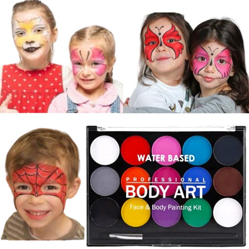 Odkryj niekończącą się przyjemność kreatywnego wyrażania się z naszym zestawem 15 kolorowych farb do malowania twarzy i ciała! Niech Twoje dziecko rozwija wyobraźnię i tworzy niezapomniane dzieła sztuki, zarówno latem, jak i podczas chłodniejszych, deszczowych dni. Nasze bezpieczne i łatwe w użyciu farby są idealne do wszelkich okazji, zapewniając doskonałą rozrywkę dla dzieci w każdym wieku. Zestaw, który przywraca radość do każdej chwili twórczej!"