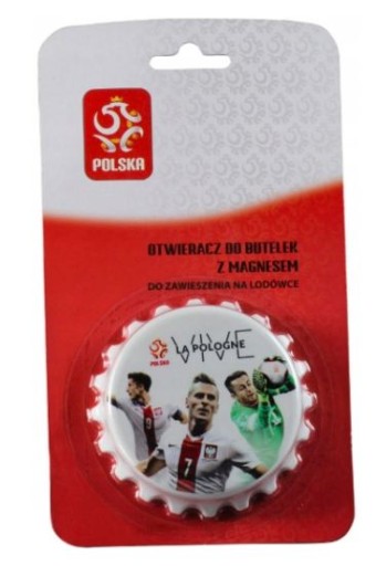 Otwieracz z magnesem Drużyna Polska Vive La Pologne. Przydatny gadżet i wspaniały prezent dla każdego kibica naszej reprezentacji. Zawieszony na lodówce, dzięki magnetycznej części będzie zawsze pod ręką. Otwieracz ma również funkcję zamknięcia butelki. Niezbędny dla każdego gospodarza imprezy.