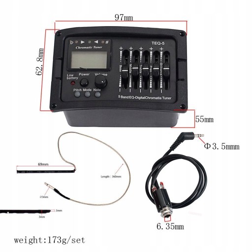 Przetwornik gitarowy TEQ-5 zespół przedwzmacniacz gitarowy TEQ Tuner piezoelektryczny z regulacją głośności