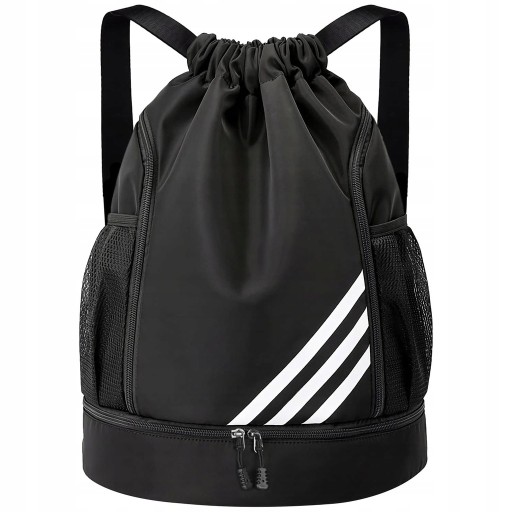 - Siatkowe kieszenie boczne z elastycznymi paskami po obu stronach plecaka sportowego pomieszczą butelki z wodą i parasole.