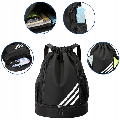 - Plecak ma wymiary 16,9 cala x 13,3 cala i może pomieścić większość przedmiotów sportowych i codziennych, takich jak piłki do koszykówki, piłki nożnej, odzież sportową, buty, podręczniki, butelki z wodą, klucze, sprzęt pływacki, ręczniki sportowe i inne.