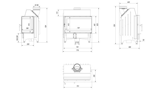 - Materiał stal kotłowa, na bokach wkładu i plecach radiatory.