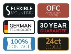 Cechy: Niezawodny kontakt 24-karatowe pozłacane styki Niemiecka technologia 30 lat gwarancji