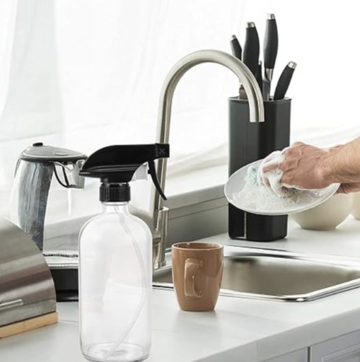 Butelka ze spryskiwaczem to praktyczne rozwiązanie do przechowywania rozcieńczonych produktów.