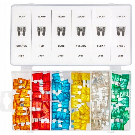 - Zestaw 120szt. bezpieczników samochodowych polskiej marki Kraft&Dele. Taki zestaw jest niezbędnym sprzętem dla każdego warsztatu i garażu. Jest niezwykle przydatny we wszystkich modelach samochodów.ZAWARTOŚĆ ZESTAWU