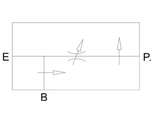 Zastosowanie:Przyłącz E do linii zasilającej oraz P do odbiornika lub do linii układu hydraulicznego, gdzie wymagana jest regulacja przepływu. Przyłącze B do zbiornika lub do drugiego odbiornika.