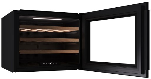 Komfortową obsługę chłodziarki do wina zapewnia dotykowy wyświetlacz, który umożliwia precyzyjne ustawienie temperatury wewnątrz komory. Z kolei oświetlenie LED może działać na dwa sposoby: może być włączone na stałe, emitując delikatne, nastrojowe światło, bądź uruchamiać się dopiero po otwarciu drzwiczek.