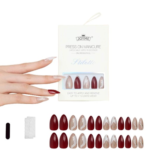 You will receive 24pcs press on false fake nails, 1 nail file, 2 sheet double-sided nail jelly sticker, help to stick the false nails to your own nails,more conveniently and is moderate and safe to your natural nails.