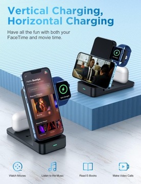 Bezprzewodowa ładowarka 3 w 1 zapewnia trzy punkty ładowania dla trzech urządzeń, które można ładować jednocześnie, dzięki czemu ładowanie iPhone'a, Apple Watch i AirPods jest proste i nie zajmuje zbyt dużo miejsca. Kompatybilny z najpopularniejszymi smartfonami, takimi jak seria iPhone 14/13/12/11/X/8, seria Samsung S20/S10/Note, seria Google Pixel, iWatch 8/7/6/5/4/3/2/SE i AirPods 3/2/1/Pro.