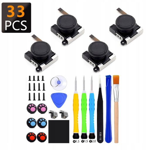 4. 33 SZTUK: Zestaw do wymiany joysticka Joycon zawiera części zamienne, narzędzia do naprawy i narzędzia do czyszczenia, zestaw wielofunkcyjny, łatwy w użyciu.