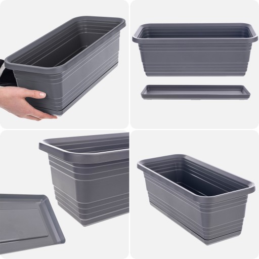 DONICZKA BALKONOWA SKRZYNKA DONICA NA KWIATY 40cm + PODSTAWKA ANTRACYT