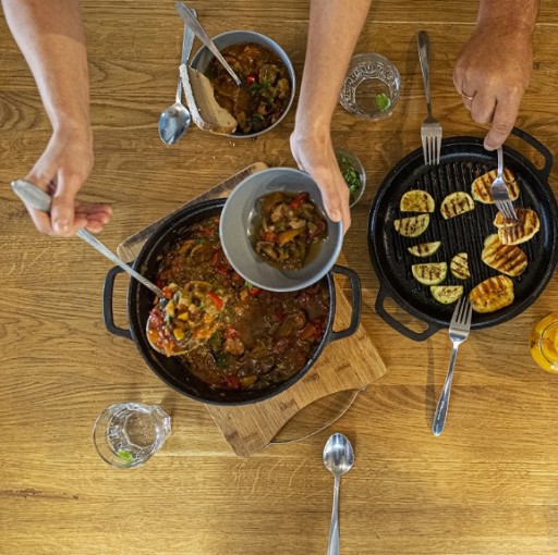 Dodatkowym atutem wykorzystania żeliwa jest również bardzo szybkie i równomierne nagrzewanie się naczyń oraz oddawanie przez nie ciepła. Estetyka garnka oraz patelni sprawia, że oba naczynia nadają się również do serwowania potraw bezpośrednio na stół. Żywność przy takiej formie podania nie tylko prezentuje się elegancko, ale także dłużej utrzymuje ciepło i cieszy pełnym smakiem!
