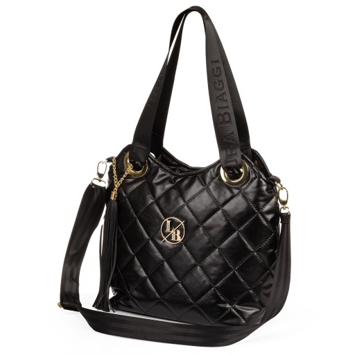 Klasyczna pojemna torebka Laura Biaggi. Duży pojemny shopper mieszczący format A4 będzie idealnym dodatkiem do codziennych stylizacji, do pracy, uczelni i na zakupy. Torebka wykonana została z wysokiej jakości skóry ekologicznej. Pikowana struktura ozdobiona złotymi dodatkami z pewnością przyciągnie oko każdej kobiety.