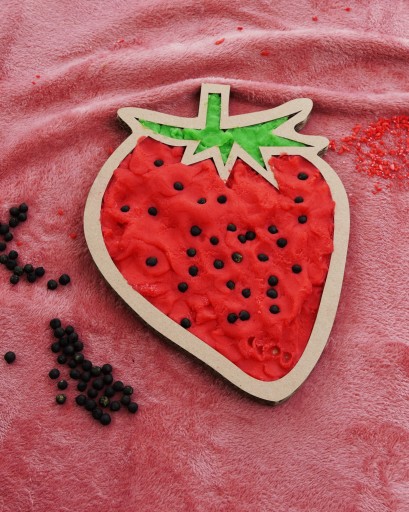 Zestaw składa się z kartonowego modelu truskawki oraz jednego opakowania barwionego ryżu i dwóch opakowań barwionej ciecierzycy. Zestaw zawiera 100g nasion czerwonego ryżu i 50g ciecierzycy zielonej oraz 50g ciecierzycy czarnej. Nasiona są barwione bezpiecznymi barwnikami spożywczymi.