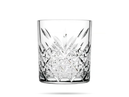 Szklanki Timeless Pasabahce. Niskie szklanki do whisky, drinków, soków, wody. Wykonane z grubego szkła wysokiej jakości,zdobione ciętym wzorem przypominającym kryształ. Trwałe i odporne na uszkodzenia.