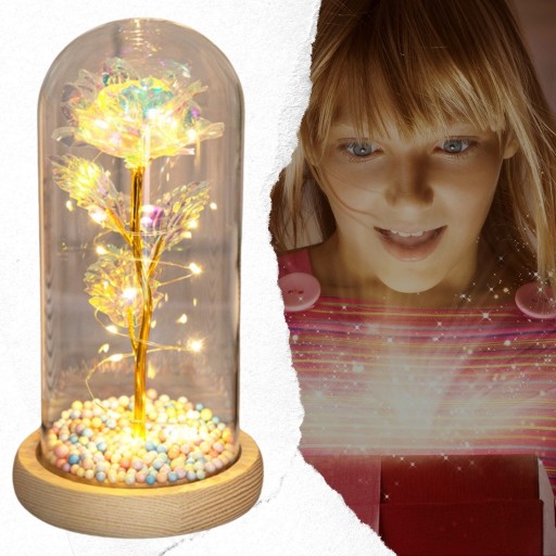 WIECZNA RÓŻA W SZKLE ŚWIECĄCA LED PREZENT PUDEŁKO NA DZIEŃ KOBIET 8 MARCA