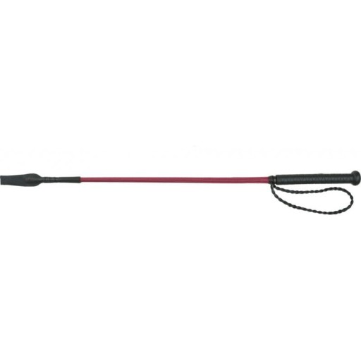 Palcat skokowy z plastikową rączką. Posiada gumową pętle do przekładania przez nadgarstek. Wykończony gumową klapką. Długość bata wynosi 65cm.