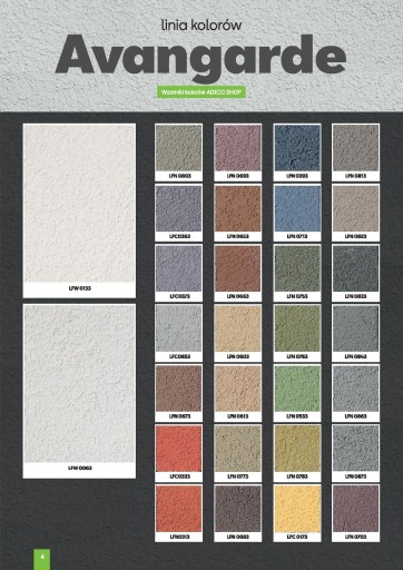 Zapoznaj się z paletą dostępnych kolorów: składając zamówienie wpisz w polu Wiadomość dla sprzedającego (NAPISZ) symbol wybranego przez Ciebie koloru tynku dla Twojej elewacji.