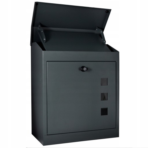 Jak to działa? Listonosz kładzie paczkę na ruchomej półce pod klapką skrzynki. Kiedy wieczko skrzynki jest zamknięte, korespondencja spada do wewnątrz skrzynki. Dostęp z zewnątrz przez klapę górną nie jest możliwy dzięki półce zabezpieczającej.