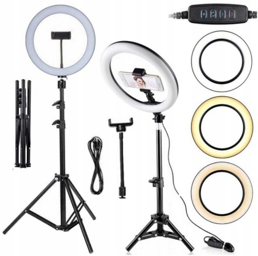 LAMPA PIERŚCIENIOWA LED 80W STATYW 220 CM RING 30CM Makijaż YouTube TikTok