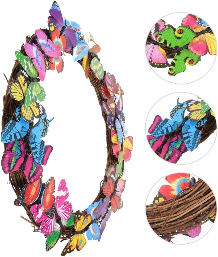 ВЕСЕННИЙ ВЕНОК НА ДВЕРЬ УКРАШЕНИЕ БАБОЧКОЙ 3D ПЛЕТЕННЫЙ ВЕНОК