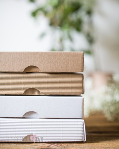 Wieczko i spód pudełka wykonane są z karbowanej, bardzo sztywnej tektury.