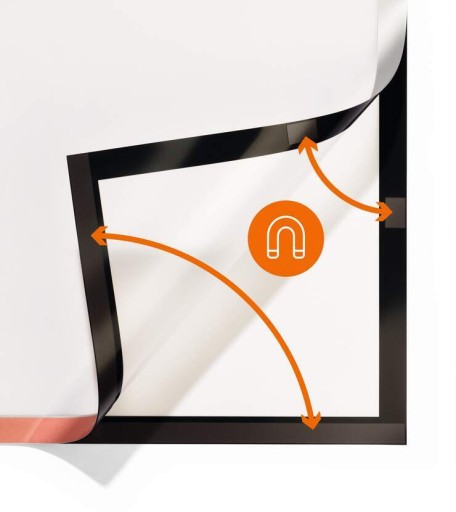- Szybkie umieszczanie i prosta wymiana informacji w rozmiarach plakatowych dzięki uchylnej ramce magnetycznej.