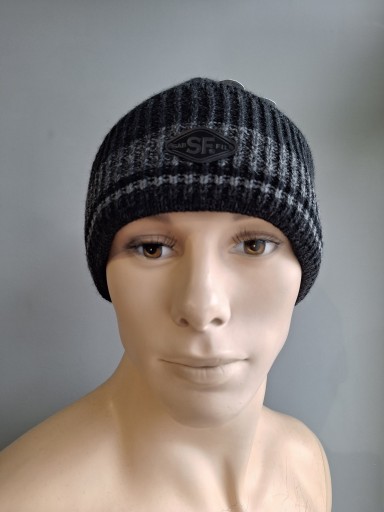 CZAPKA MĘSKA ZIMOWA GRUBA SABFIL NA POLARZE CZARNA CIEPŁA