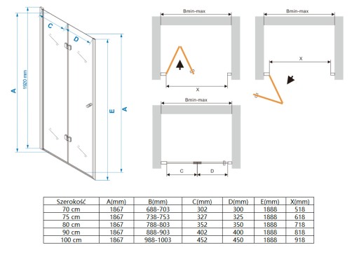 SWISS MEYER MS 200 to drzwi prysznicowe składane