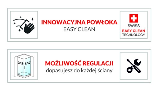 Kabina wykonana jest w technologii EASY CLEAN – to ultra cienka powłoka, która ułatwia czyszczenie !!