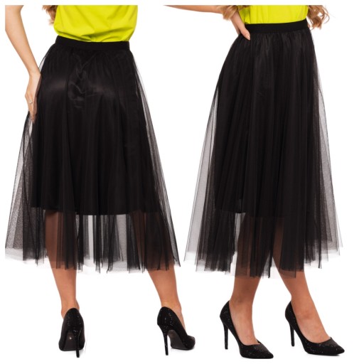 CZARNA SPÓDNICA TIULOWA DAMSKA BEZ WZORU ZWIEWNA WYGODNA TIUL MORAJ L/XL