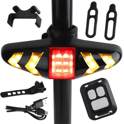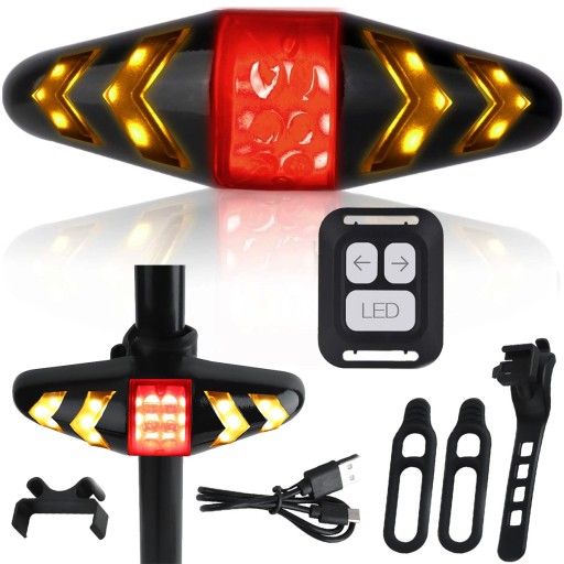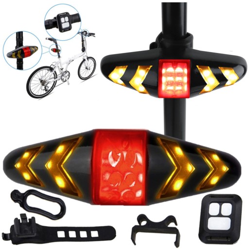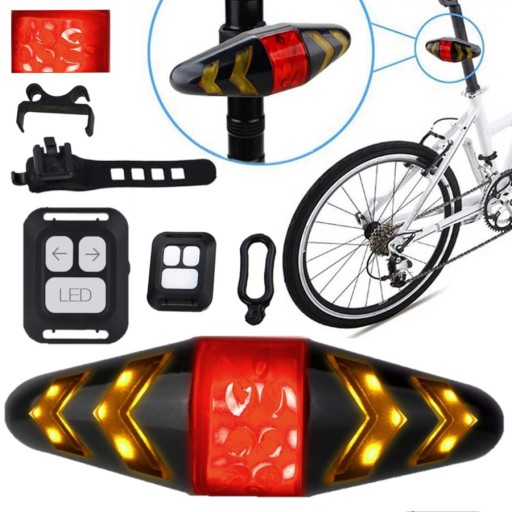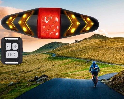 Mocna lampka rowerowa LED tylna z kierunkowskazami i funkcją sterowania pilotem bezprzewodowym.