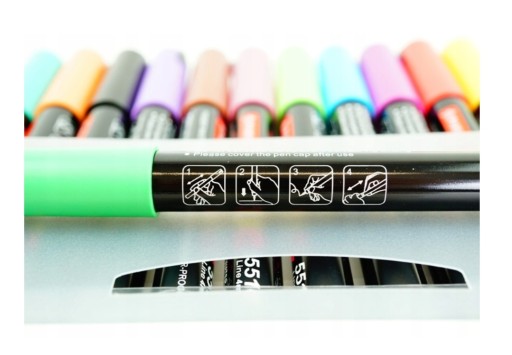 Profesjonalne markery z farbą akrylową na bazie wody.