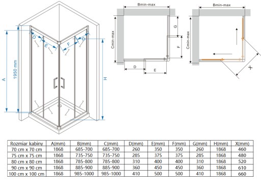Dzięki możliwości regulacji, dopasujesz kabinę do każdej ściany.