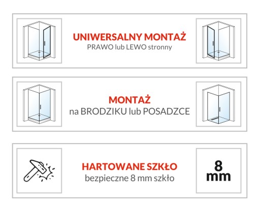 - Opcje montażu: uniwersalny, zarówno lewo-, jak i prawostronny,