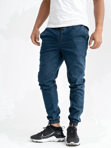 Joggery Jeansowe SPODNIE MĘSKIE Jasne Niebieskie GRUBE LOLO Złote HAFT XL