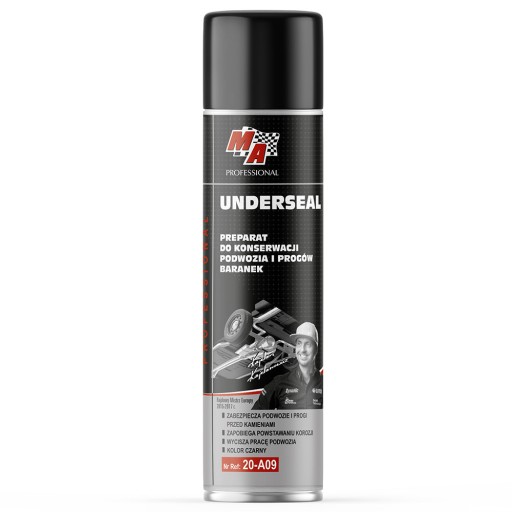 Preparat do zabezpieczania i konserwacji podwozia na bazie bitumiczno kauczukowej tworzy trwałą i elastyczną powłokę ochronną na powierzchni elementów metalowych. Zabezpiecza przed przenikaniem wody i soli zapobiega powstawaniu korozji. Chroni progi samochodów przed uszkodzeniami w wyniku uderzenia kamieniami. Ogranicza hałas przenikający z jezdni.