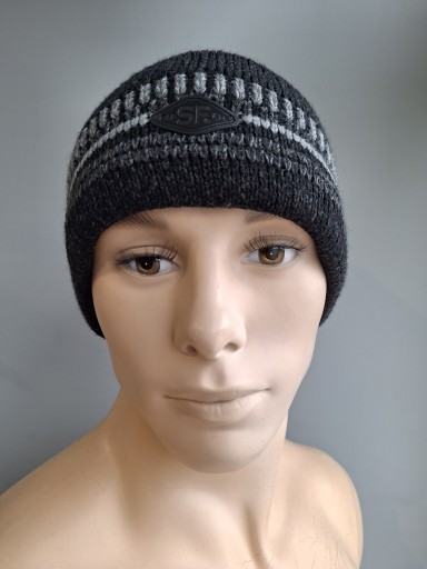 ШАПКА МУЖСКАЯ ПЛОТНАЯ ЗИМНЯЯ САБФИЛЬ НА ФЛИСЕ, ЧЕРНАЯ, ТЕПЛЫЕ ПОЛОСКИ