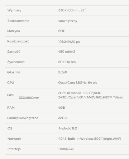 Przyciąga uwagę dzięki możliwości wgrania i konfiguracji wielu typów reklam (filmy, obrazki, plakaty, otwarta strona www, aplikacje napisane pod system android)