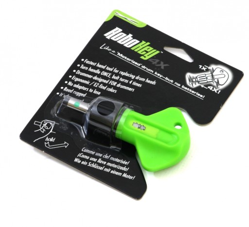 Robokey 4X to specjalistyczny klucz do strojenia bębnów i szybkiej wymiany naciągów. Posiada przekładnię zębatkową. Dokręcanie śrub naciągowych odbywa się 4 razy szybciej. Po zablokowaniu mechanizmu działa w obie strony oraz jak zwykły klucz strojeniowy.