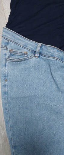 Spodnie jeansowe z wygodnym, elastycznym materiałem na brzuchu, zakończone szeroką gumką. Spodnie mają pięć kieszonek. Skład materiału: 74%bawełna, 25% poliester, 1% elastan.