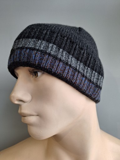 ШАПКА МУЖСКАЯ ПЛОТНАЯ ЗИМНЯЯ САБФИЛЬ НА ФЛИСЕ, ЧЕРНАЯ, ТЕПЛЫЕ ПОЛОСКИ