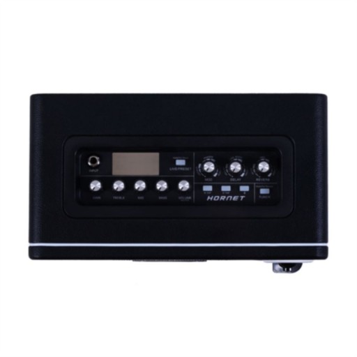 Wzmacniacz wyróżnia na pewno stylowy wygląd z pokryciem z czarnego tworzywa tolex. Mooer Hornet będzie ozdobą każdego pokoju. Trzeba wspomnieć również o funkcji połączenia Bluetooth, która pozwala na modyfikowanie ustawień za pomocą komputera czy smarfona. Gitarę podłączymy do wzmacniacza za pomocą standardowego gniazda jack 6,3 mm. Nieszablonowym dodatkiem jest dodatkowe wejście 3,5 mm AUX i gniazdo słuchawkowe. Całość charakteryzuje świetny stosunek jakości do ceny.
