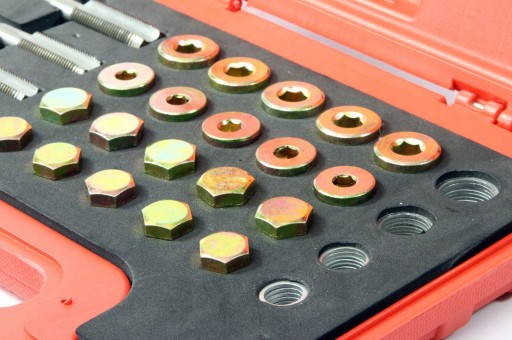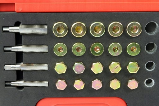 Zestaw do naprawy gwintów w miskach olejowych, skrzyniach biegów, przekładniach i dyferencjałach.