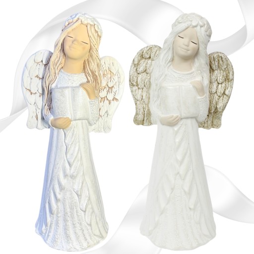 - anioła gipsowego 26 cm, kolor kremowy, pozłacane skrzydełka / kolor biały naturalne skrzydełka