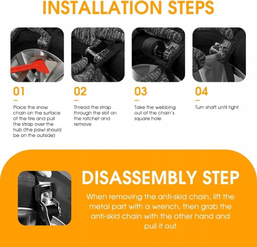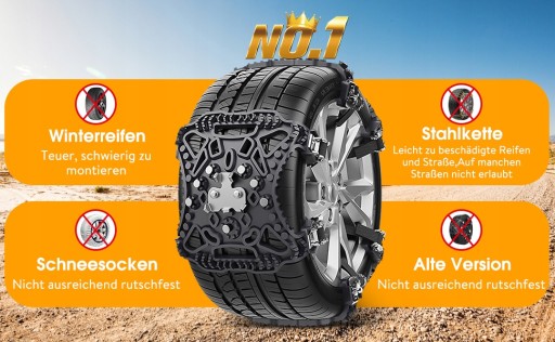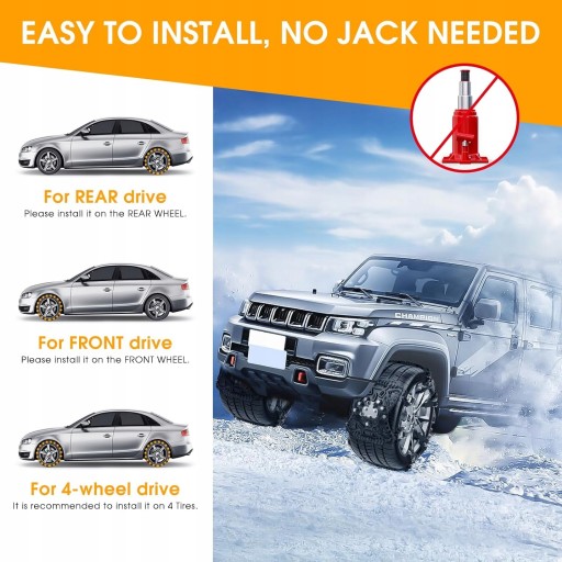 - Wysokiej jakości zimowe akcesoria samochodowe: łańcuchy śniegowe wykonane są z wysokiej jakości czystej stali manganowej, grubego TPU (odpornego na zimno do -60°C) oraz elementów mocujących ze stopu aluminium, aby zapewnić trwałość i długowieczność. Nie szkodzi oponom jak metalowe łańcuchy śniegowe w samochodach i jest tańszy niż wymiana zimowej opony zimowej.