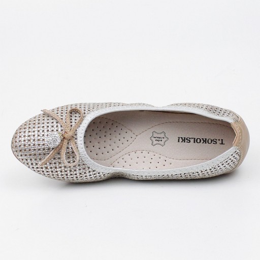 T.Sokolski W24-276 beżowe baleriny z najnowszej kolekcji. Zostały wykonane ze skóry, miękka skórzana wkładka, elastyczny spód, obcas 1,5 cm wysokości.