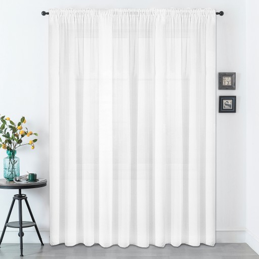 Woalowe firany dzięki swojej gładkiej fakturze doskonale pasują do wielu różnych pomieszczeń, gdzie w odpowiedni sposób wpuszczają do środka promienie słoneczne jak również dyskretnie oddzielają wybrane przestrzenie. Tkanina ta jest delikatna i transparentna, dzięki czemu nie odbiera przyjemności widoku oraz wpuszcza odpowiednią ilość światła do wewnątrz. Gotowa do założenia nie wymaga dodatkowego przystosowywania. Świetnie odnajdzie się jako firana przy oknach i drzwiach balkonowych i tarasowych. W połączeniu z grubymi zasłonami pozwoli stworzyć odpowiednią koncepcję w stylu glamour.